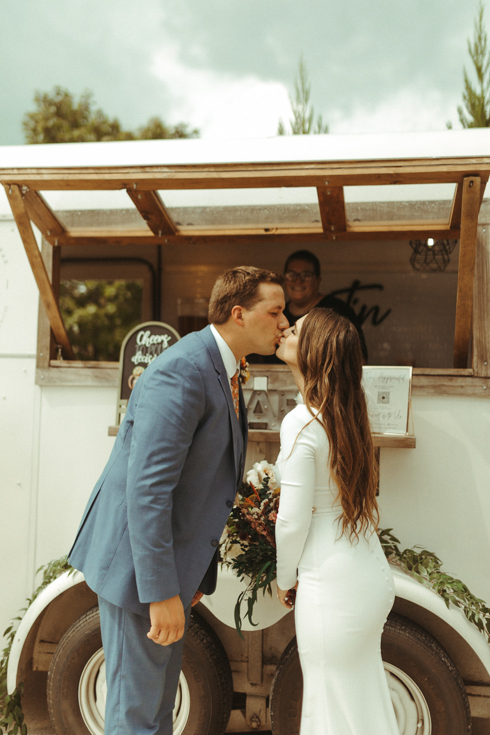 Rhianna originally had the idea to just elope, her and her main man, in a super simple ceremony. Happily, though, their families really wanted to participate, despite being hundreds of miles away. With about 20-ish of their closest, the couple exchanged vows in front of The Gray Dove's signature fireplace with a mini reception with Tipsy serving a couple amazing drinks. The micro wedding was followed by dinner downtown and more family photos to be remembered for years to come.