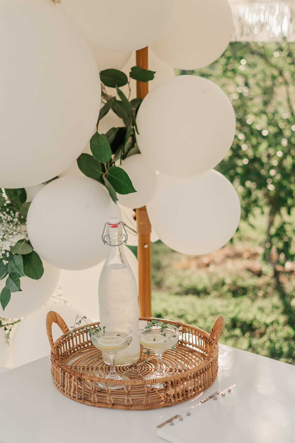 Our refurbished Icecycle Tricycle turned Mobile Bar Cart, Elsa, was the perfect addition to this intimate event, styled with gorgeous white balloons, soft pink florals, babies breath, and dark greenery she was nothing shy of boho perfection. While Tipsy served up Margaritas with our frozen champagne popsicles with lime garnishes, Elsa served our Limoncello that totally encapsulated the theme. Our Limoncello takes days to prepare in-house by our team then combined with fresh, homemade lemonade and prosecco for the perfect finishing touches.